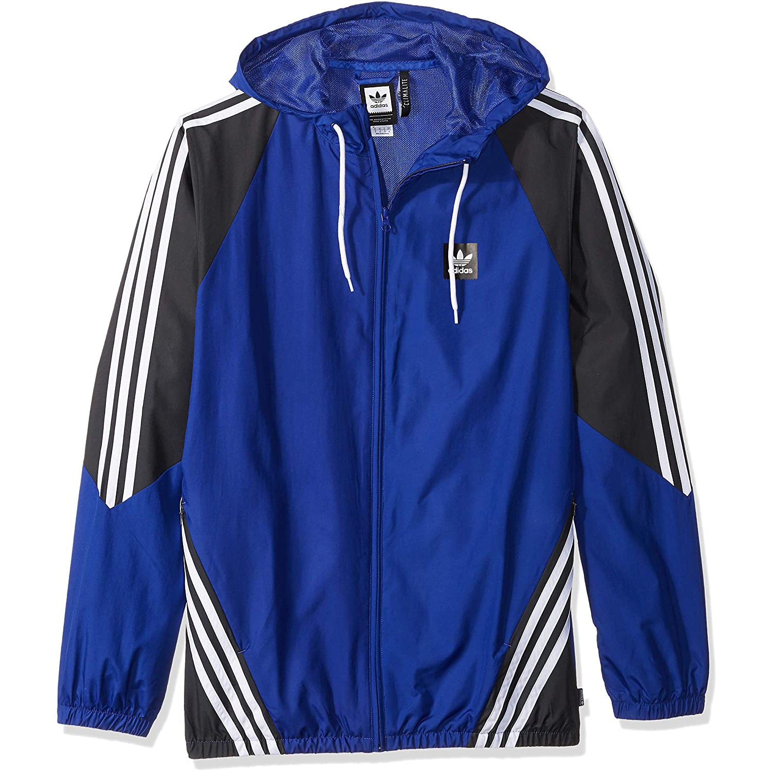 The adidas Insley jacket has a look that's rooted in sports heritage. Made of a smooth woven polyester in a regular fit. The jacket is lightweight and functional with an adjustable hood and zip pockets.