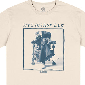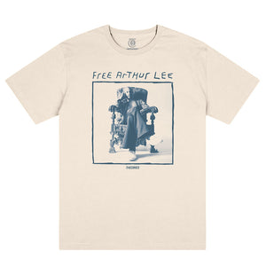 Arthur Lee was the leader of the band "Love" in the late 1960's and 70's....one of our favorite bands at TOA. The music of which has been featured in countless classic skate videos over the years. Lee was caught up in a controversial arrest in the late 90's and charged with the unlawful discharge of a firearm, sentenced to 12 years in prison although he maintained his innocence throughout his incarceration. And even though gun-powder residue tests confirmed Lee hadn't fired a gun that day and someone later came forward and confessed to the crime, Lee was never exonerated. So Theories honors one of their favorite voices in music with a new shirt exclaiming "Free Arthur Lee!"